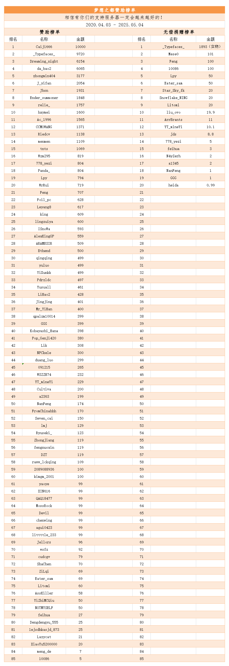 赞助榜单